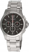 Мужские часы-хронограф с секундомером. Круглый стальной корпус. Функция индикации заряда (EOL). Карбоновый циферблат защищен прочным сапфировым стеклом. Метки в виде штрихов и арабской цифры 12.