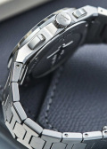 Гильошированный циферблат с метками в виде штрихов. Стрелки и метки с люминесцентным покрытием, которое светится в темноте после непродолжительной зарядки на свету. Окошко даты находится в положении 12 часов.