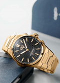 Рифленая заводная головка украшена фирменным логотипом. Задняя крышка с выгравированным изображением звуковой волны крепится на 4-х винтах. Браслет с раскладывающейся застежкой и системой быстрой замены.