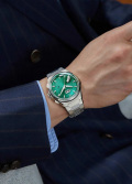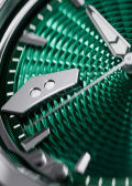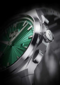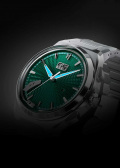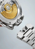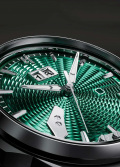 Гильошированный циферблат «колос пшеницы» с метками в виде штрихов. Стрелки с люминесцентным покрытием, которое светится в темноте после непродолжительной зарядки на свету. Окошко даты находится в положении 12 часов. Рифленая заводная головка украшена фирменным логотипом. Прозрачная задняя крышка крепится на 4-х винтах. Титановый браслет с раскладывающейся застежкой и системой быстрой замены.