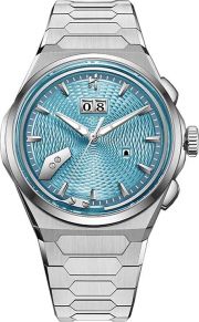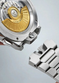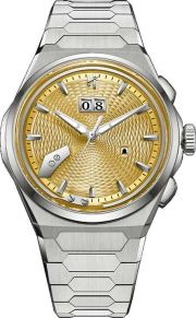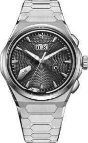 Гильошированный циферблат «колос пшеницы» с метками в виде штрихов. Стрелки с люминесцентным покрытием, которое светится в темноте после непродолжительной зарядки на свету. Окошко даты находится в положении 12 часов. Рифленая заводная головка украшена фирменным логотипом. Прозрачная задняя крышка крепится на 4-х винтах. Титановый браслет с раскладывающейся застежкой и системой быстрой замены.