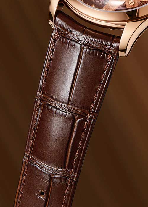 Рифленая заводная головка. Прозрачная задняя крышка крепится на 4-х винтах. Кожаный ремешок с классической застежкой и системой быстрой замены.