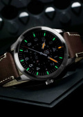 Завинчивающаяся заводная головка с защитой. Завинчивающаяся задняя крышка украшена выгравированным изображением лучшей боевой машины времен Второй мировой войны — истребителя P-38 Lightning. Батарея рассчитана на 50 месяцев. Ремешок с классической застежкой.