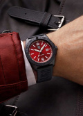 Безель из усиленного карбона CARBONOX™ вращается в одном направлении. Завинчивающаяся задняя крышка и заводная головка с защитой. Батарея рассчитана на 50 месяцев. Ремешок с раскладывающейся застежкой и системой быстрой замены. Застежка с системой блокировки.