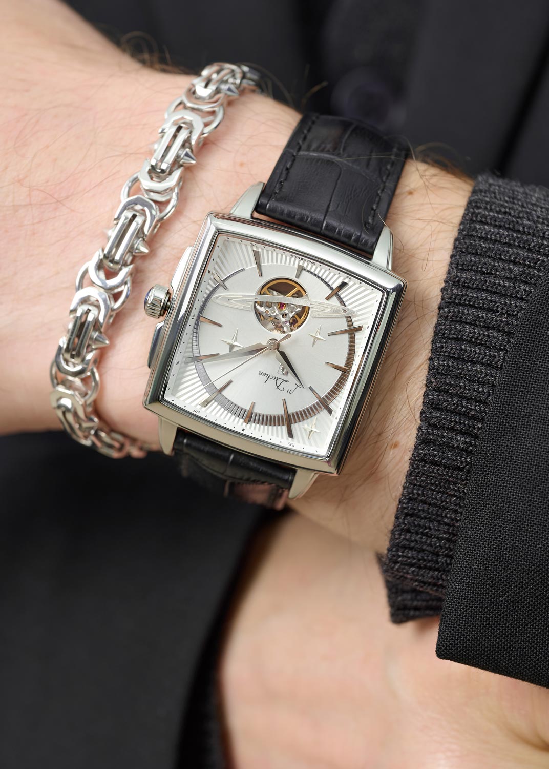 - мужские, швейцарские, механические с автоподзаводом, 50WR, стекло: сапфировое, 39х39мм, ld-D444