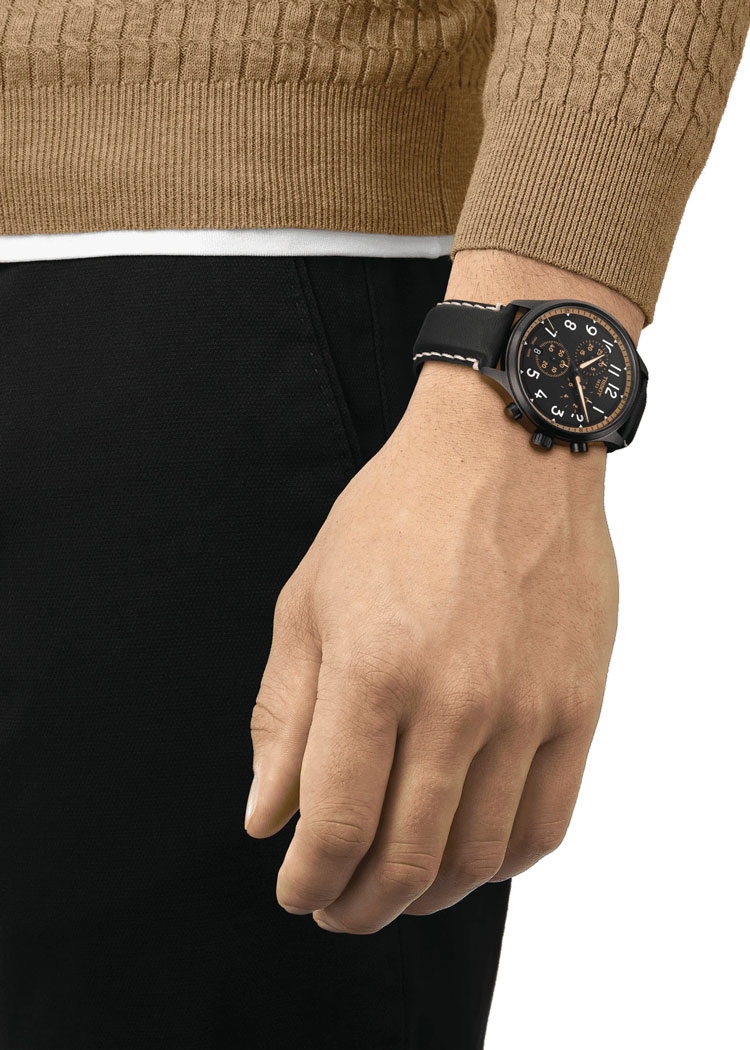 - мужские, швейцарские, кварцевые, 50WR, стекло: сапфировое, D 40мм, толщина 7,1мм, ширина ремешка 20мм, вес 46г, T143.410