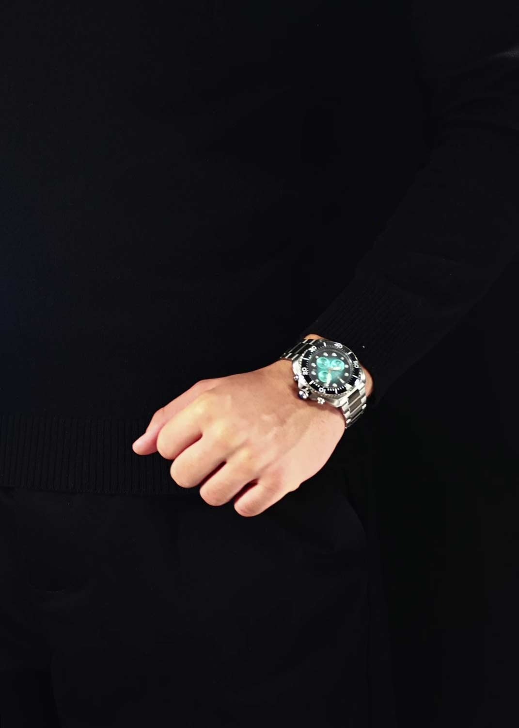 - мужские, швейцарские, кварцевые, 100WR, стекло: сапфировое, D 45мм, толщина 11мм, ширина ремешка 22мм, вес 79г