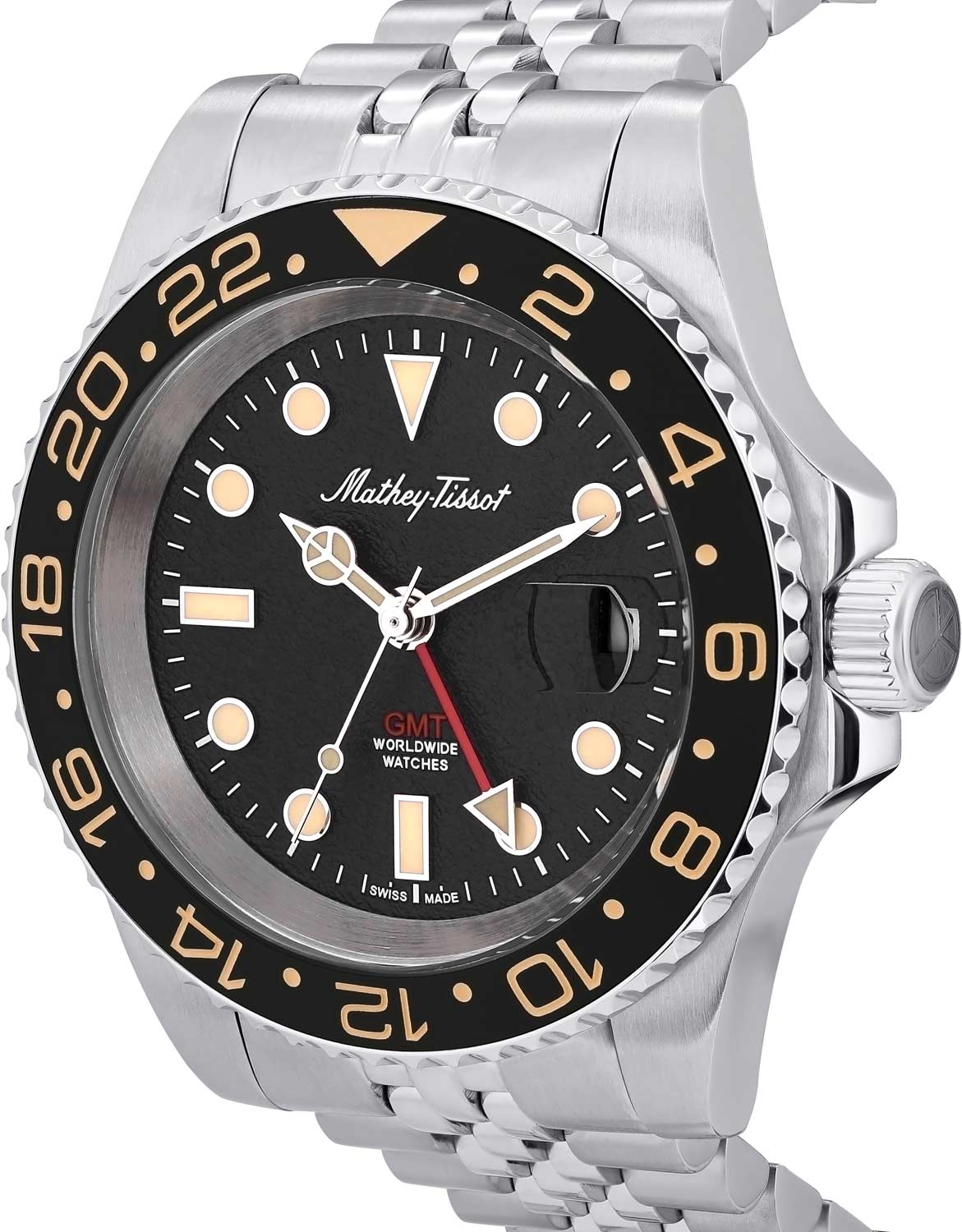 - мужские, швейцарские, кварцевые, 100WR, стекло: сапфировое с антибликовым покрытием, D 46мм, ширина браслета 24мм