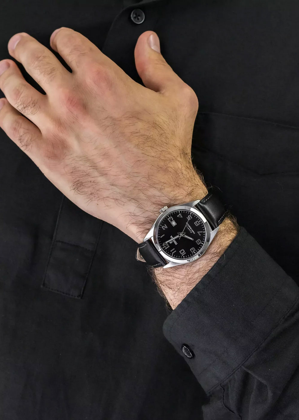 - мужские, Испания, кварцевые, 100WR, стекло: минеральное, D 40мм, толщина 9,1мм, ширина ремешка 21мм, вес 57г, F20446