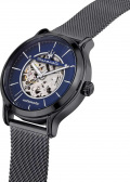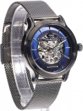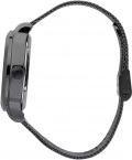 Метки в виде штрихов. Рифленая заводная головка. Завинчивающаяся прозрачная задняя крышка. Браслет миланского плетения.