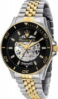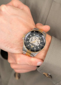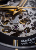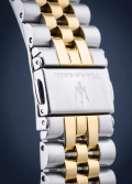 Рифленая заводная головка с защитой. Завинчивающаяся прозрачная задняя крышка. Браслет с раскладывающейся застежкой.