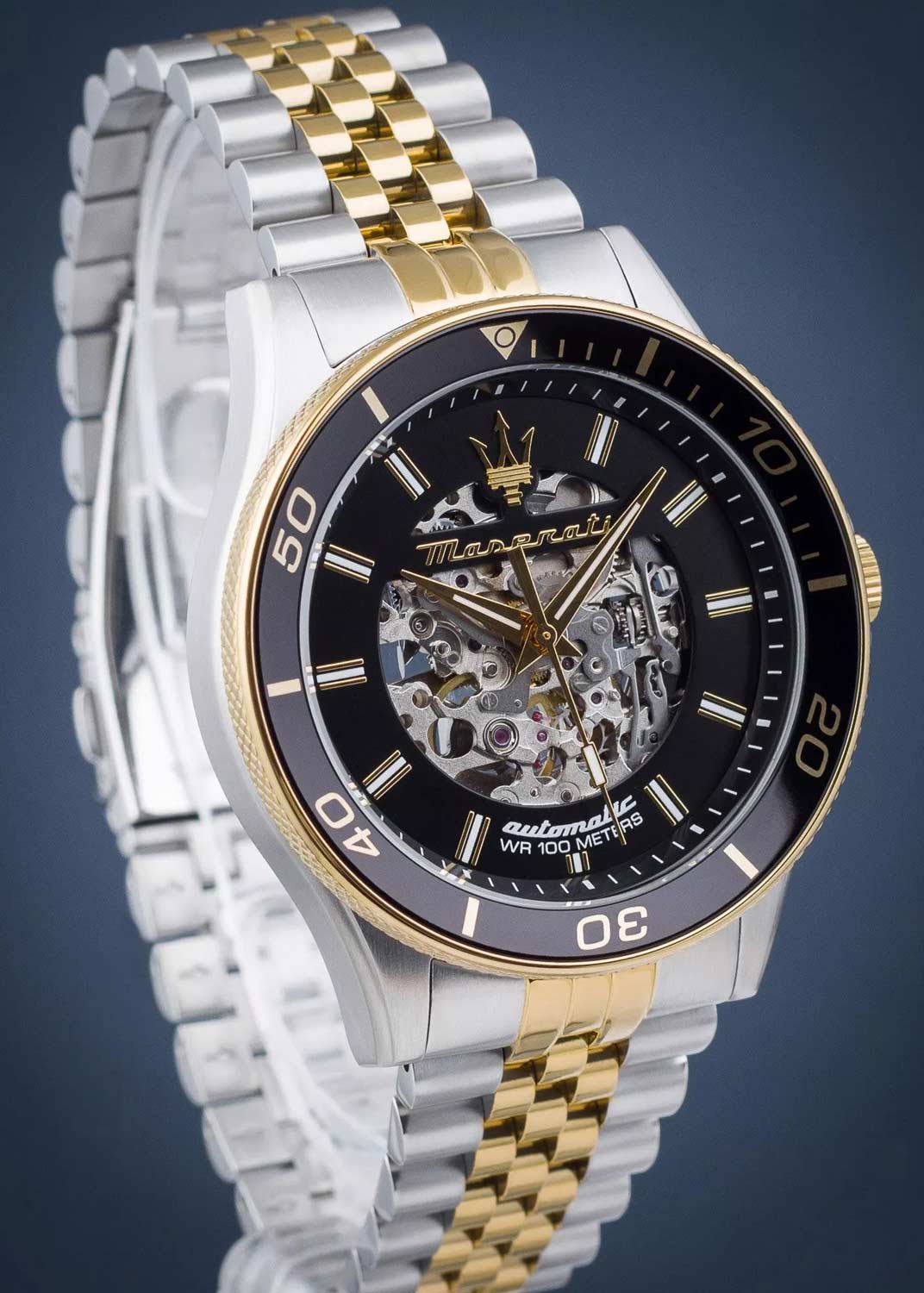 Рифленая заводная головка с защитой. Завинчивающаяся прозрачная задняя крышка. Браслет с раскладывающейся застежкой.