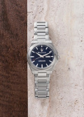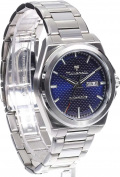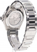 Рифленая заводная головка с защитой. Завинчивающаяся прозрачная задняя крышка. Браслет с раскладывающейся застежкой.