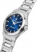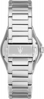Рифленая заводная головка с защитой. Завинчивающаяся прозрачная задняя крышка. Браслет с раскладывающейся застежкой.