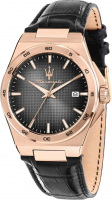 Рифленая заводная головка с защитой. Ремешок из натуральной кожи с тиснением под кожу аллигатора. Классическая застежка.