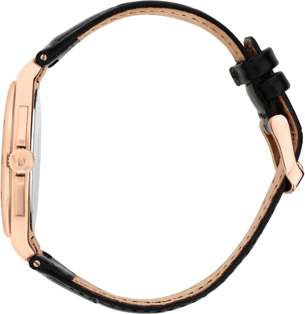 Рифленая заводная головка с защитой. Ремешок из натуральной кожи с тиснением под кожу аллигатора. Классическая застежка.