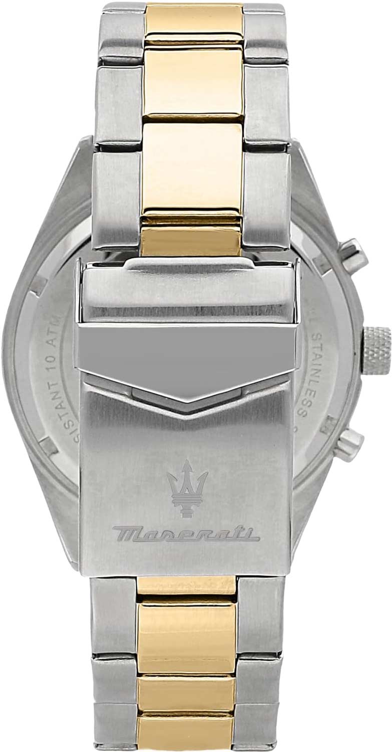 Время в 24-х часовом формате, дата и день недели вынесены на отдельные циферблаты. Рифленая заводная головка. Завинчивающаяся задняя крышка. Браслет с раскладывающейся застежкой. Застежка с системой блокировки.