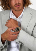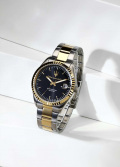 Окошко даты с увеличительным стеклом находится в положении 3 часа. Рифленая заводная головка. Завинчивающаяся задняя крышка. Браслет с раскладывающейся застежкой.