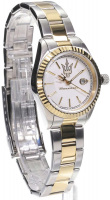Завинчивающаяся рифленая заводная головка. Завинчивающаяся задняя крышка. Браслет с раскладывающейся застежкой.