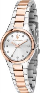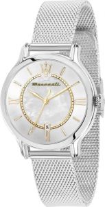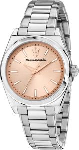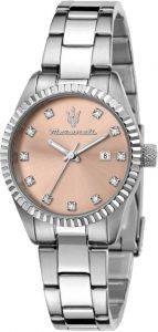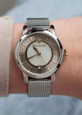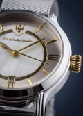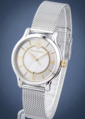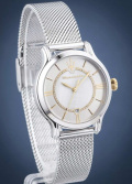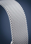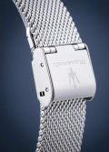 Окошко даты находится в положении 6 часов. Завинчивающаяся рифленая заводная головка. Завинчивающаяся задняя крышка. Браслет миланского плетения с регулируемой застежкой.