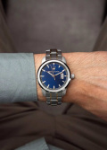Окошко даты находится в положении 6 часов. Рифленая заводная головка. Браслет с раскладывающейся застежкой.