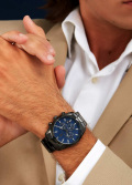 Окошко даты находится в положении между отметками 4 и 5 часов. Рифленая заводная головка. Браслет с раскладывающейся застежкой.