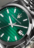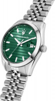 Окошко даты с увеличительным стеклом находится в положении 3 часа. Рифленая заводная головка. Браслет с раскладывающейся застежкой.