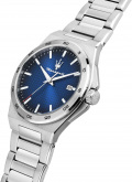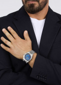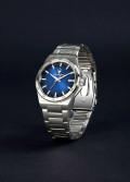 Метки в виде штрихов. Окошко даты находится в положении 3 часа. Рифленая заводная головка с защитой. Браслет с раскладывающейся застежкой.
