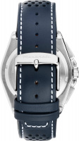 Окошко даты находится между часовыми метками 4 и 5. Рифленая заводная головка с защитой. Завинчивающаяся задняя крышка. Перфорированный кожаный ремешок с классической застежкой.