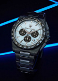 Окошко даты находится между часовыми метками 4 и 5. Рифленая заводная головка с защитой. Завинчивающаяся задняя крышка. Браслет с раскладывающейся застежкой.