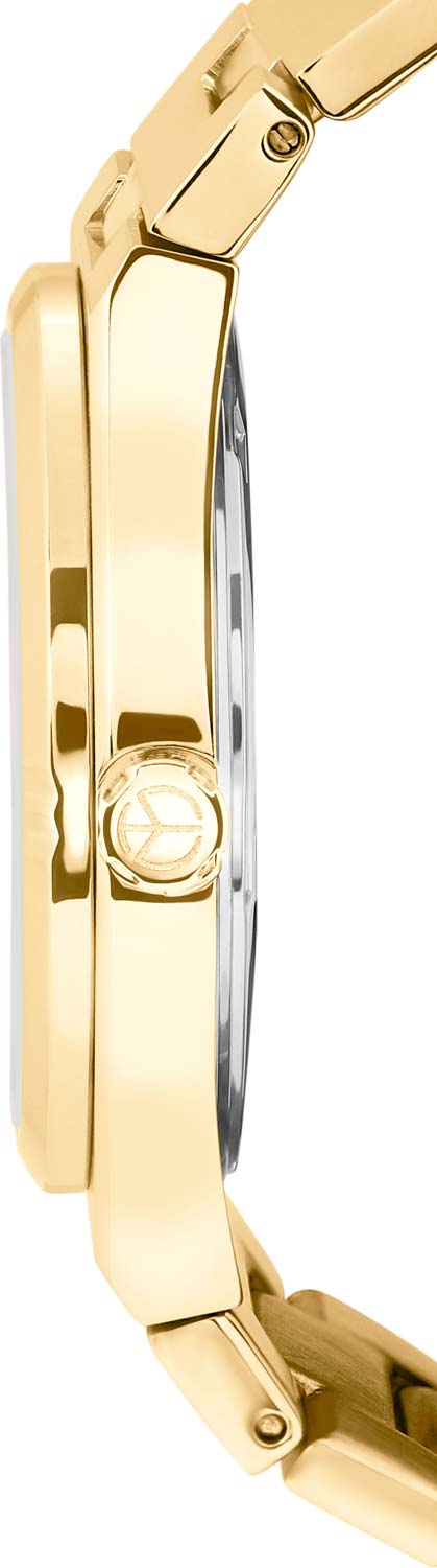 Стрелки и метки с люминесцентным покрытием SuperLumiNova, которое светится в темноте после непродолжительной зарядки на свету. Окошко даты находится в положении 3 часа. Сатинированный стальной браслет с PVD покрытием цвета желтого золота и застежкой-бабочкой.