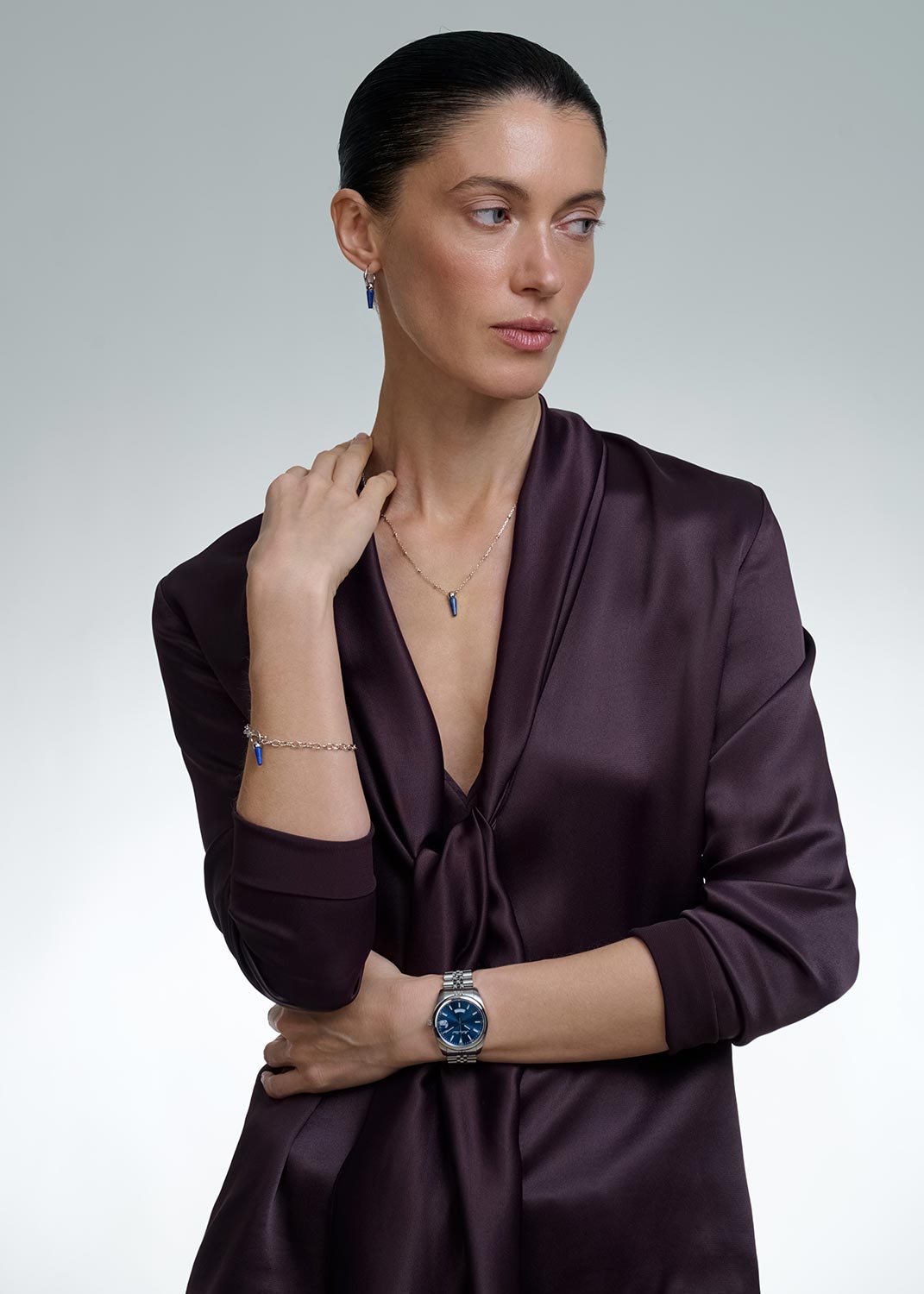 Стрелки и метки с люминесцентным покрытием SuperLumiNova, которое светится в темноте после непродолжительной зарядки на свету. Окошко даты с увеличительным стеклом находится в положении 3 часа. Индикация дня недели в положении 6 часов. Стальной браслет с раскладывающейся застежкой.