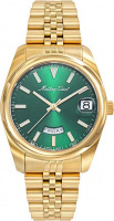Женские кварцевые часы Mathy Day-Date с круглым корпусом из нержавеющей стали. Циферблат с метками в виде штрихов защищен сапфировым стеклом.