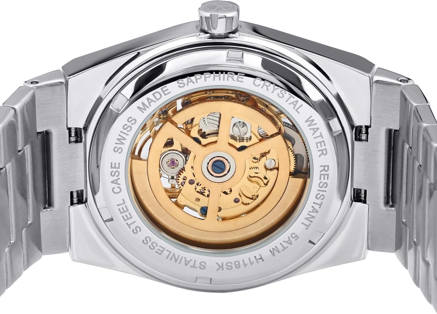 Стрелки и метки с люминесцентным покрытием SuperLumiNova, которое светится в темноте после непродолжительной зарядки на свету. Задняя крышка с сапфировым стеклом. Сатинированный стальной браслет с застежкой-бабочкой.