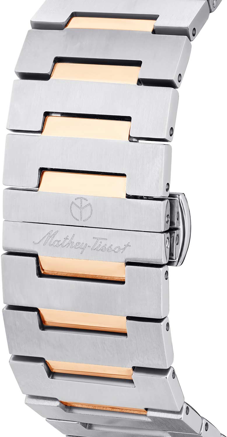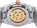 Стрелки и метки с люминесцентным покрытием SuperLumiNova, которое светится в темноте после непродолжительной зарядки на свету. Задняя крышка с сапфировым стеклом. Сатинированный стальной браслет с частичным розовым PVD покрытием и застежкой-бабочкой.