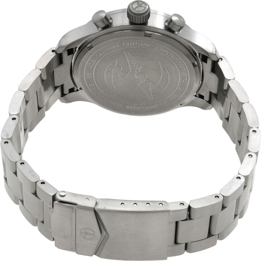Окошко даты находится в положении 6 часов. Рифленая заводная головка. Титановый браслет с застежкой-бабочкой.