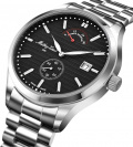 Ретроградный указатель запаса хода. Окошко даты находится в положении 3 часа. Секундная стрелка вынесена на отдельный циферблат. Задняя крышка с сапфировым стеклом. Стальной браслет с застежкой-бабочкой.