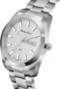 Окошко даты и дня недели находится в положении 3 часа. Рифленая заводная головка. Стальной браслет с раскладывающейся застежкой. Застежка с системой блокировки.