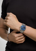Стрелки и метки с люминесцентным покрытием SuperLumiNova, которое светится в темноте после непродолжительной зарядки на свету. Окошко даты с увеличительным стеклом находится в положении 3 часа. Индикация дня недели в положении 6 часов. Стальной браслет с раскладывающейся застежкой.