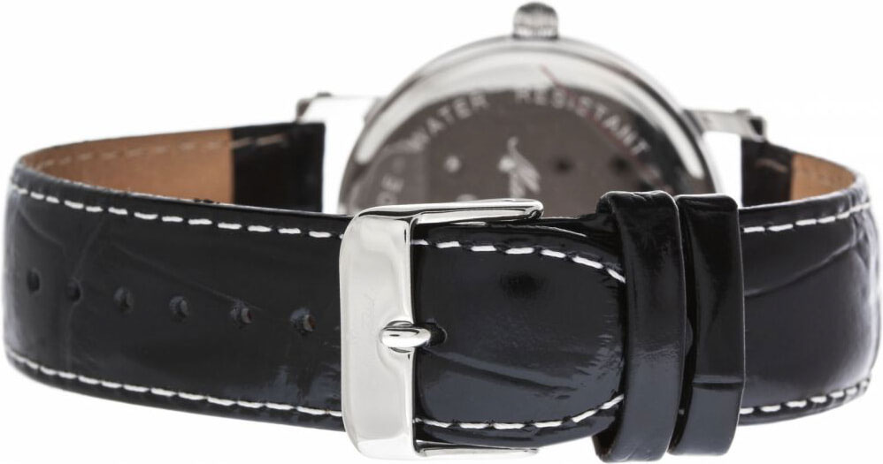 Окошко даты находится в положении 3 часа. Рифленная заводная головка. Ремешок из натуральной кожи с тиснением под кожу крокодила с классической застежкой.