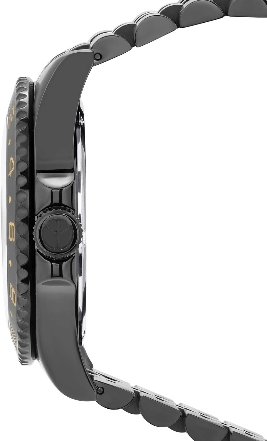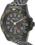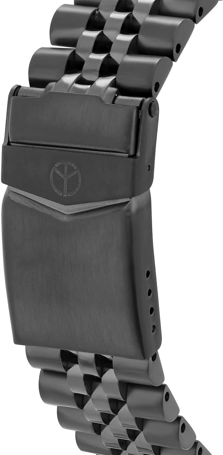 Окошко даты с увеличительным стеклом находится в положении 3 часа. Завинчивающаяся заводная головка с защитой. Стальной браслет с черным PVD покрытием и раскладывающейся застежкой с фиксатором.