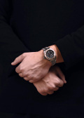 Окошко даты с увеличительным стеклом находится в положении 3 часа. Завинчивающаяся заводная головка с защитой. Стальной браслет с раскладывающейся застежкой с фиксатором.