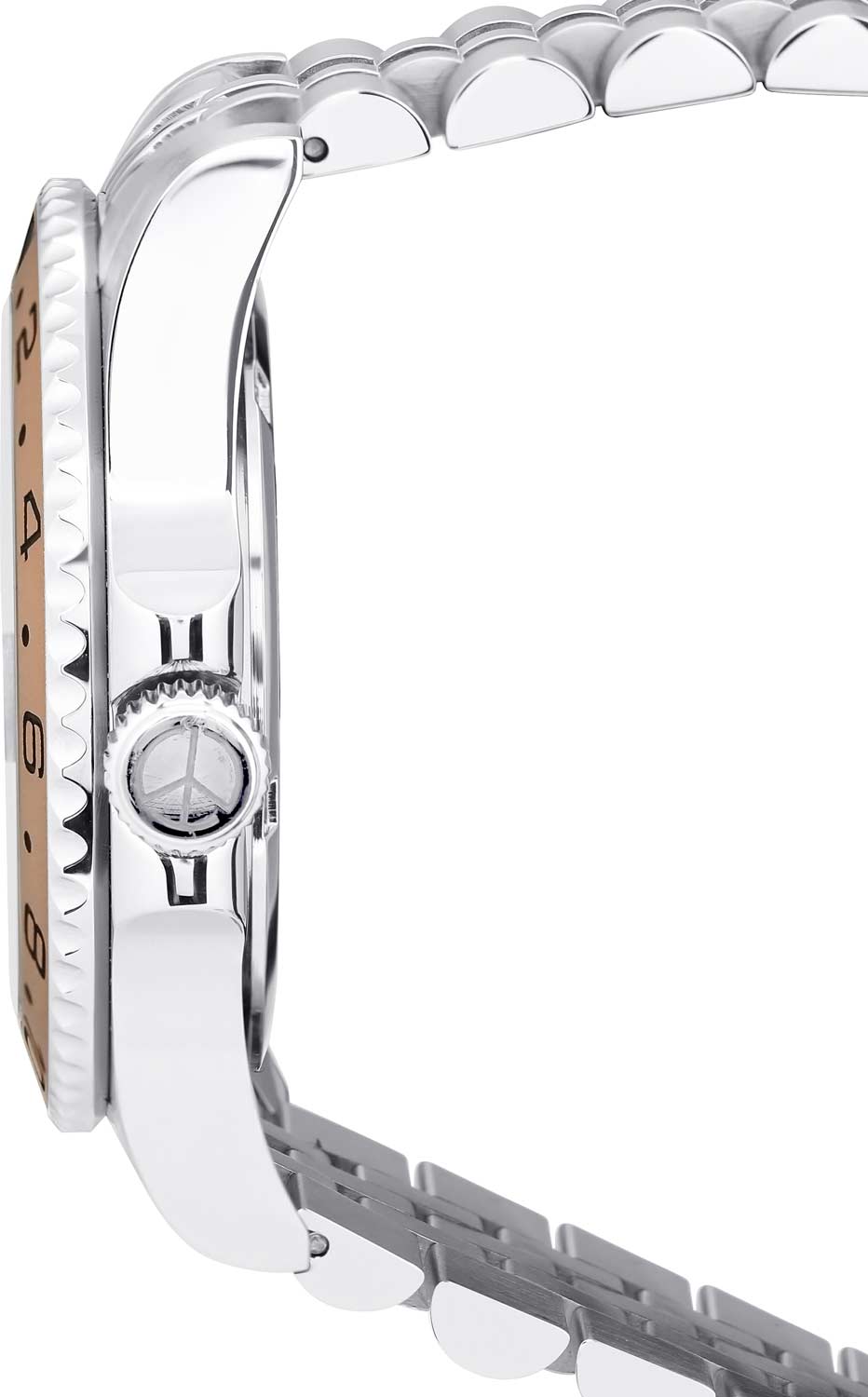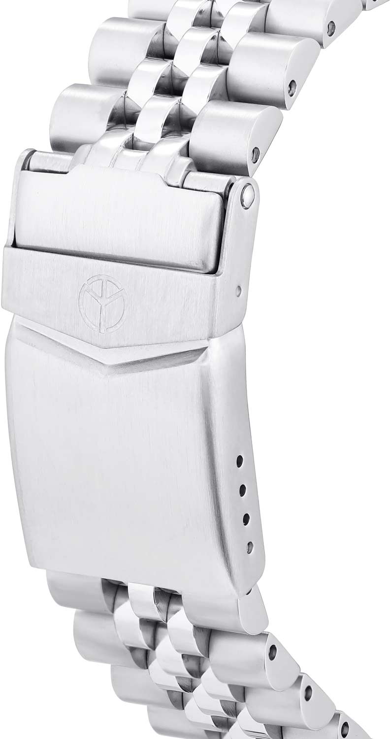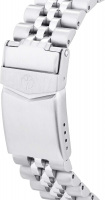 Окошко даты с увеличительным стеклом находится в положении 3 часа. Завинчивающаяся заводная головка с защитой. Стальной браслет с раскладывающейся застежкой с фиксатором.