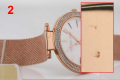 Darci. Женские часы с круглым стальным корпусом. Перламутровый циферблат с метками в виде штрихов. Безель украшен паве из кристаллов. Рифленая заводная головка. Браслет миланского плетения.