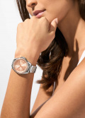 Метки в виде римских цифр. Рифленая заводная головка с защитой. Браслет с раскладывающейся застежкой.