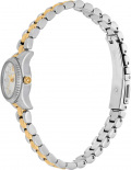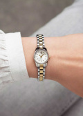 Метки в виде точек с кристаллами и римской цифры XII. Рифленая заводная головка. Браслет с раскладывающейся застежкой.