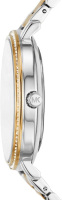 Метки в виде точек и штрихов с кристаллами. Рифленая заводная головка. Браслет с раскладывающейся застежкой.