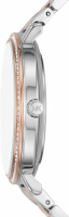 Метки в виде точек и штрихов с кристаллами. Рифленая заводная головка. Браслет с раскладывающейся застежкой.