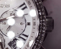 Женские часы-хронограф с секундомером. 12-ти и 24-х часовой формат времени. Круглый стальной корпус. Безель инкрустирован кристаллами. Циферблат выполнен по технологии Sunray (солнечные лучи) и защищен минеральным стеклом. Метки в виде штрихов и римских цифр.