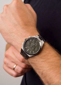 Окошко даты находится в положении между отметками 4 и 5 часов. Рифленая заводная головка. Завинчивающаяся задняя крышка. Браслет с раскладывающейся застежкой.